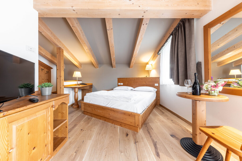 Le camere del White Moss sono luminose, tutte con balcone. Adatte anche a chi viaggia con animali, sono progettate per farti sentire subito a casa: essenziali, comode e con uno stile alpino in legno che rilassa.